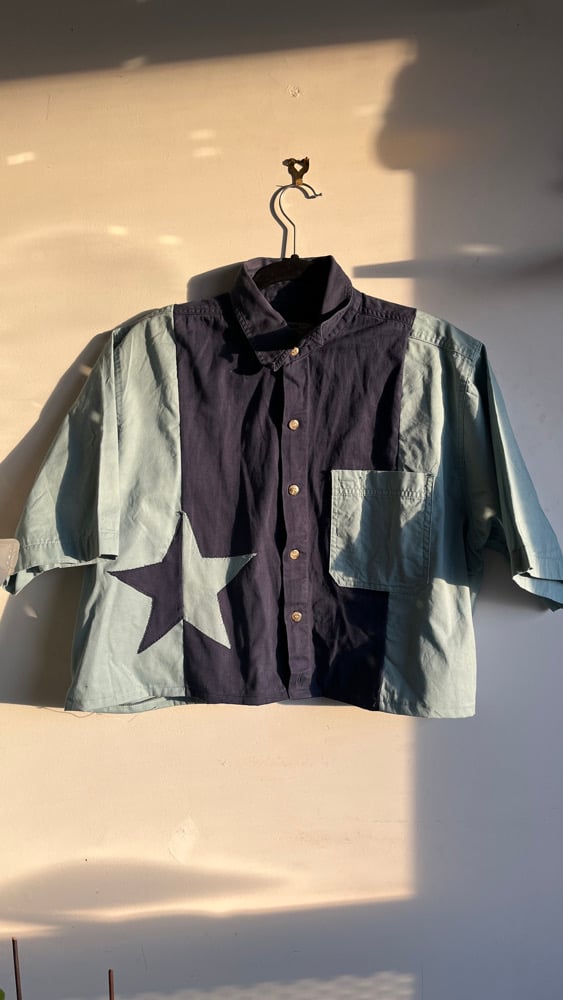 M/L - blue Star short sleeve buttonup 2