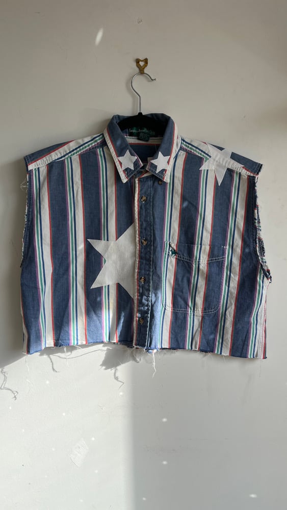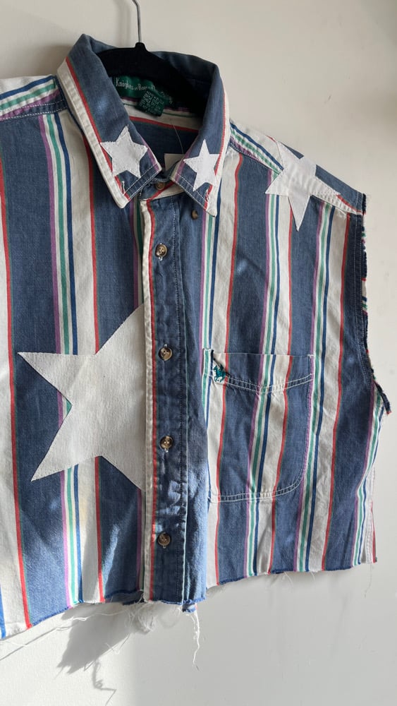 L- cropped white star button-up